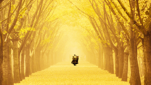 银杏时光隧道一抹邮政绿,成了这里最美丽的风景。
