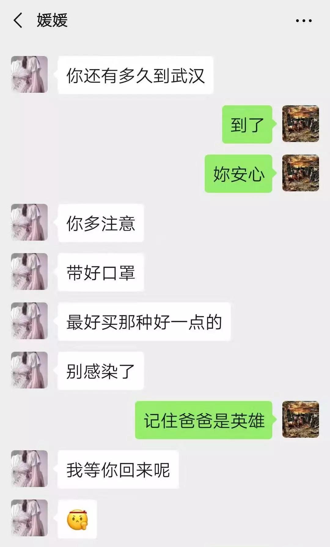 唐大哥的儿子给他发来微信:“爸爸你是英雄,我感到非常骄傲。我们等你回家。”