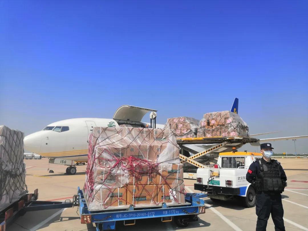 湖北省捐赠物资装上邮航包机。