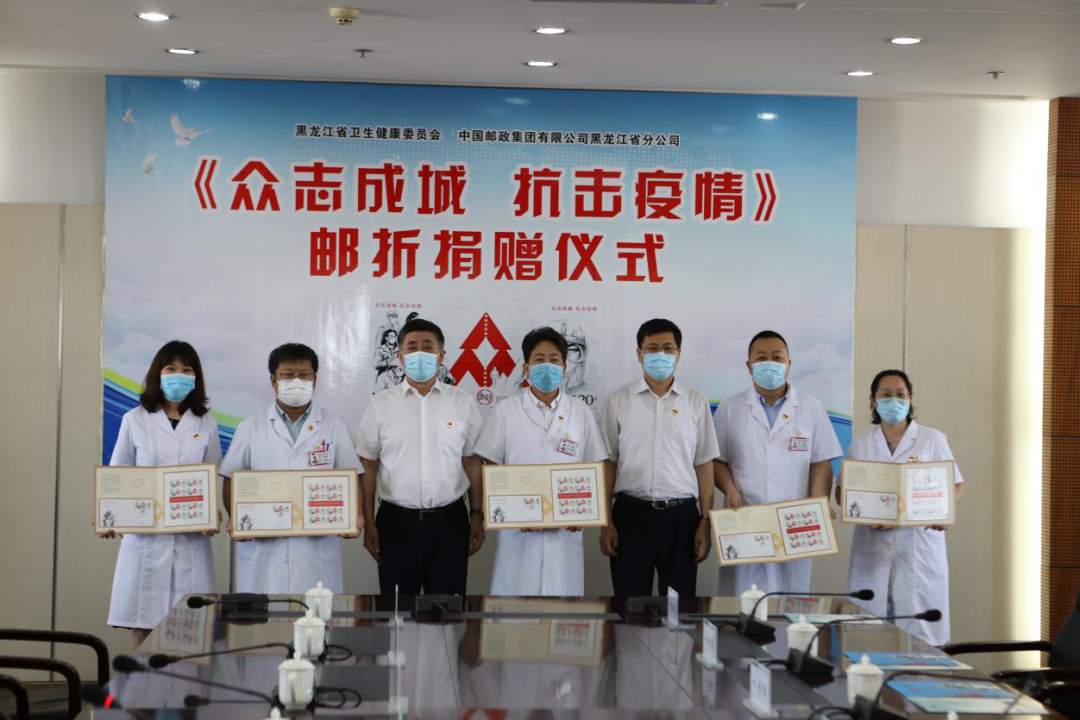 7月1日,黑龙江省邮政分公司与黑龙江省卫健委共同举办了《众志成城 抗击疫情》邮折捐赠仪式。此次捐赠活动,黑龙江省邮政分公司代表中国邮政集团向省卫健委捐赠邮折1654套(内含大版票、首日封),赠送给支援湖北、黑龙江省抗击疫情一线的主要医务人员、疾控人员。