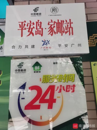 10月27日,广州市平安建设促进会与中国邮政集团有限公司广州市分公司在乐意居花苑家邮站签约共建并揭牌全市第一个“平安岛·家邮站”平安社区便民服务点,同时向“广州街坊·邮政平安建设服务队”授旗。一个普通的中国邮政服务网点,从此增加了一个新功能——社区“平安岛”。
