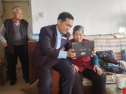 为给客户送去冬日温暖,邮储银行济宁市分行启动延伸服务预案,将柜面服务延伸到医院、家庭等特殊需求客户身边,解决客户燃眉之急。图为曲阜支行客户经理为行动不便的八旬老人开卡,让老人足不出户即可享受金融服务。