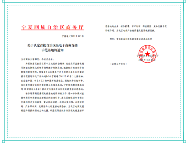 近日,宁夏回族自治区商务厅发布认定首批11家自治区级电商直播示范基地,宁夏邮政“中邮云视新电商中心”入选首批认定名单。