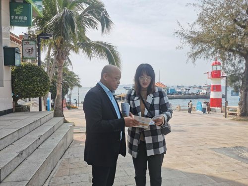 在外伶仃岛上的玉带环腰、摩崖石刻、拱桥渡水等景点,谢坚和税务人员一道沿路向景区商铺、行人游客宣讲税收优惠政策,成为外伶仃岛上一道流动的风景线。