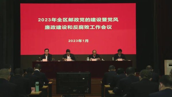 1月18日,全区邮政2023年党的建设暨党风廉政建设和反腐败工作会议召开。会上,宁夏邮政分公司党委书记、总经理闫峻同志作了题为《高举思想旗帜 弘扬建党精神 以高质量党建引领保障宁夏邮政高质量发展》的讲话,纪委书记侯瑛同志作了纪委工作的讲话,分别总结了2022年全区邮政党建、党风廉政建设和反腐败工作,部署了2023年工作任务。