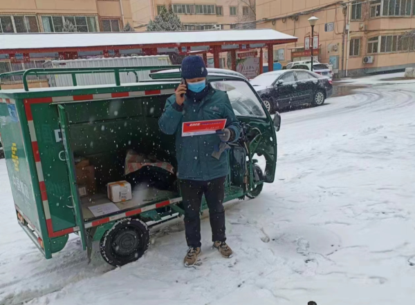 “雪天路滑,请大家注意安全,减速慢行,并提前联系客户,做好解释工作。”各单位业务工作群内不断发送各项安全提示、服务提醒。各营业场所的入口处摆放“防滑垫”,全区邮政揽投员克服结冰路滑、天气寒冷等不利影响,冒雪将党报党刊和邮政包裹准时送到用户手中。