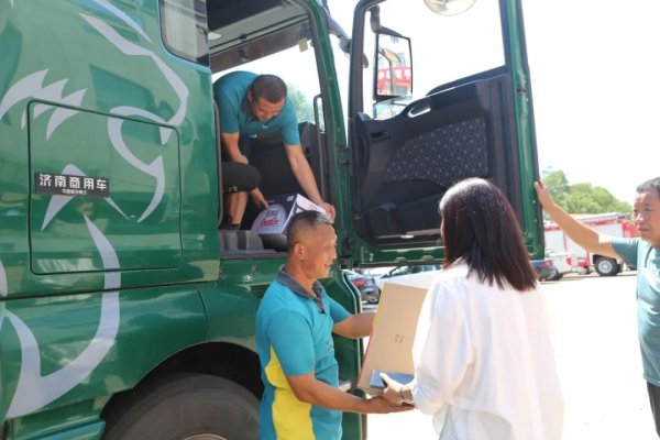 8月7日上午,银川邮区中心驾驶员陈涛、张岩顶着高温天气将捐赠的物资装车,平罗县商务局局长谈静涛将防暑药品及路途生活保障用品递到陈涛和张岩手中,并叮嘱他们注意行车安全,一路平安。