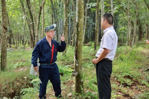 刘丽海在聊天中得知村民黎红光有贷款的意向后,马上将这条信息反馈给兰洋镇邮政支局局长刘辉。第二天一早,刘辉就赶往黎红光家的橡胶林。