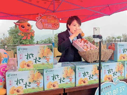 邮政主播直播带货农产品。 □薛婷 摄