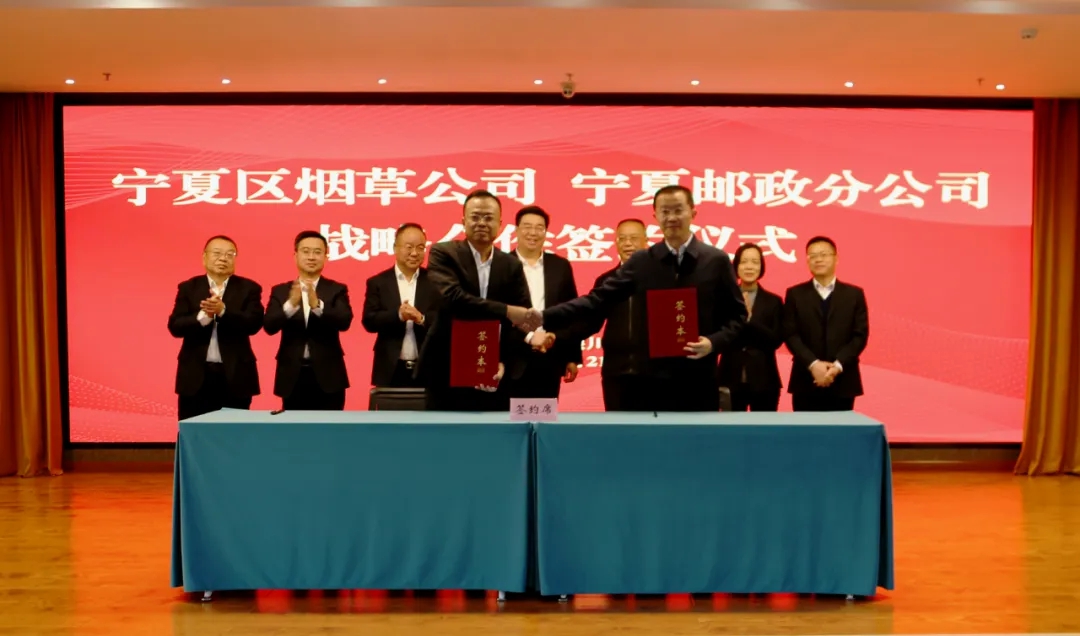 11月21日,宁夏邮政与宁夏烟草签署战略合作协议。中国邮政集团宁夏分公司党委书记、总经理闫峻、宁夏区烟草专卖局(公司)党组书记、局长、总经理宋俊出席签约仪式并讲话。中国邮政集团宁夏分公司党委委员、副总经理李中青与宁夏区烟草专卖局(公司)党组成员、副总经理温晓伦代表双方签署协议。