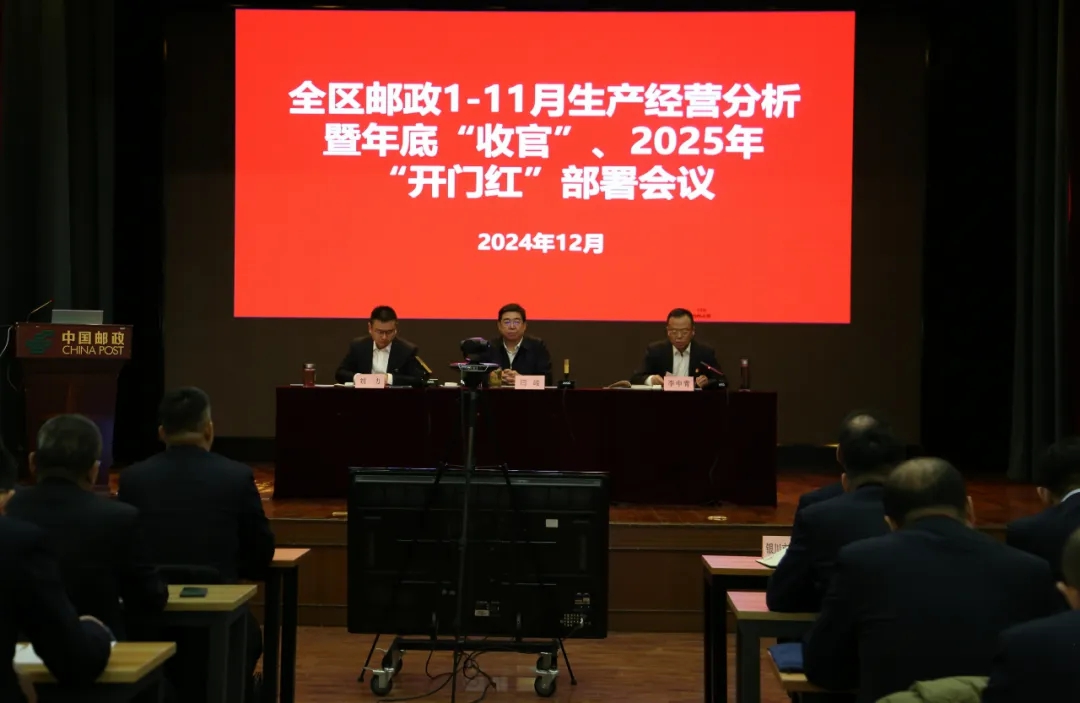 12月16日,宁夏邮政召开1-11月生产经营分析暨2024年收官和 2025 年“开门红”工作部署会议,总结今年以来全区邮政经营发展取得的成绩,分析存在的短板弱项,部署2024年收官冲刺、2025年“开门红”工作。区分公司党委书记、总经理闫峻出席会议并讲话,区分公司党委委员、副总经理李中青、刘力参加会议。