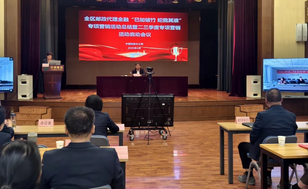 4月16日,宁夏邮政分公司召开代理金融“巳如破竹 舍我其谁”专项营销活动总结暨二三季度营销活动启动会议,系统总结一季度专项营销活动,深入分析当前面临的形势,全面部署二三 季度重点营销任务。区分公司党委书记、总经理闫峻参加会议并讲话。